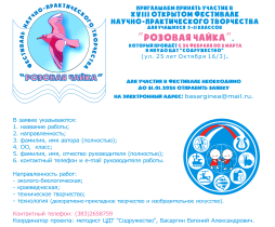 ЦДТ "Содружество" приглашает учеников 5-11 классов принять участие в открытом фестивале научно-практического творчества "Розовая чайка"